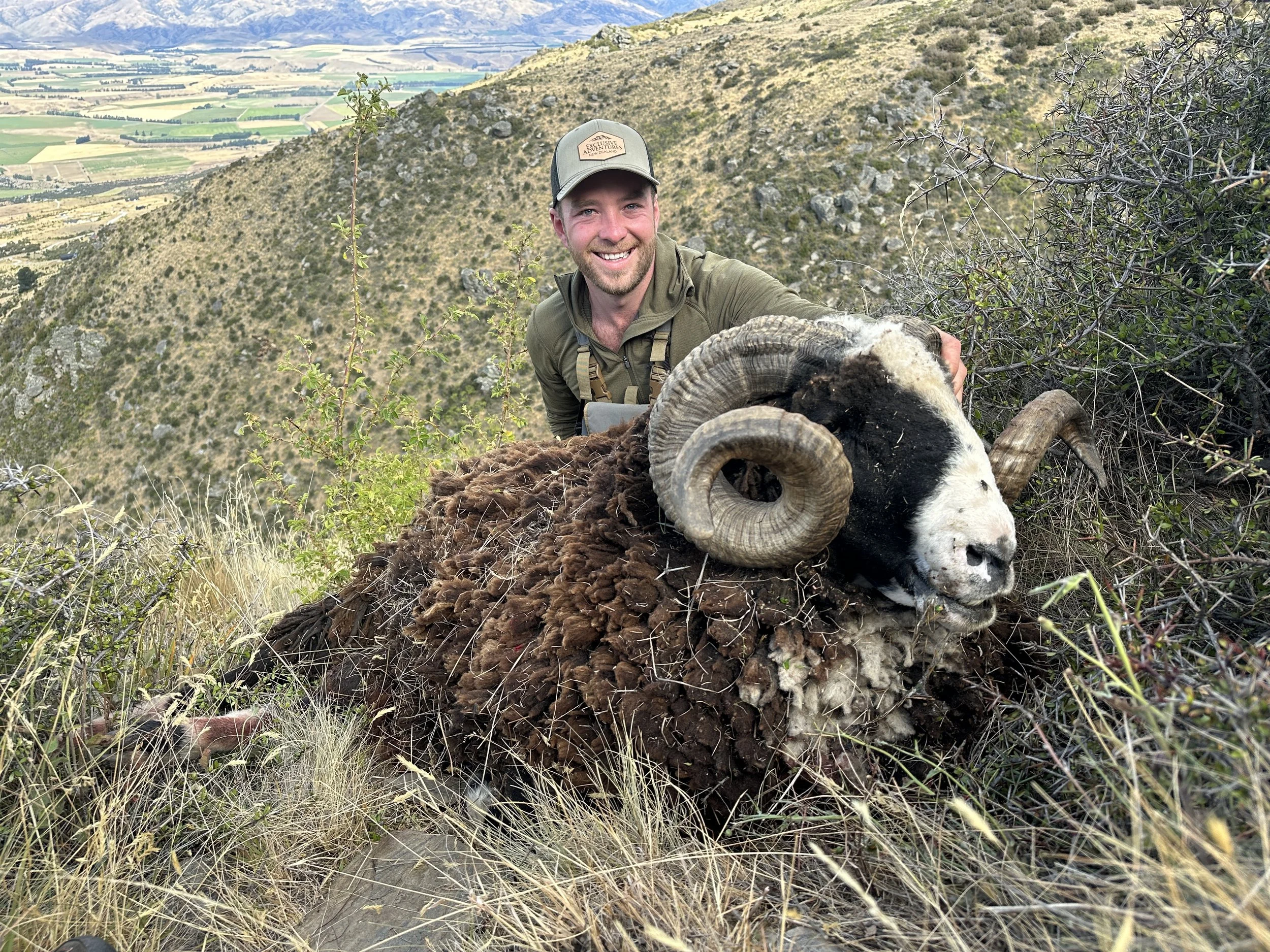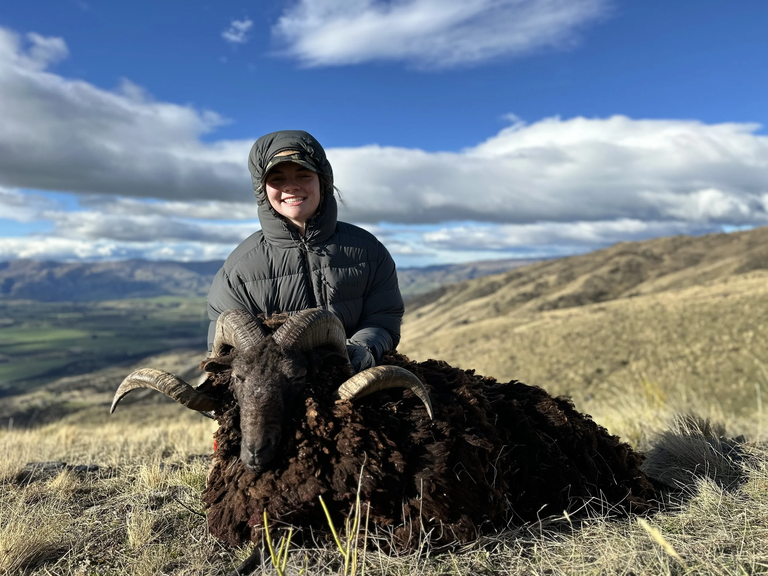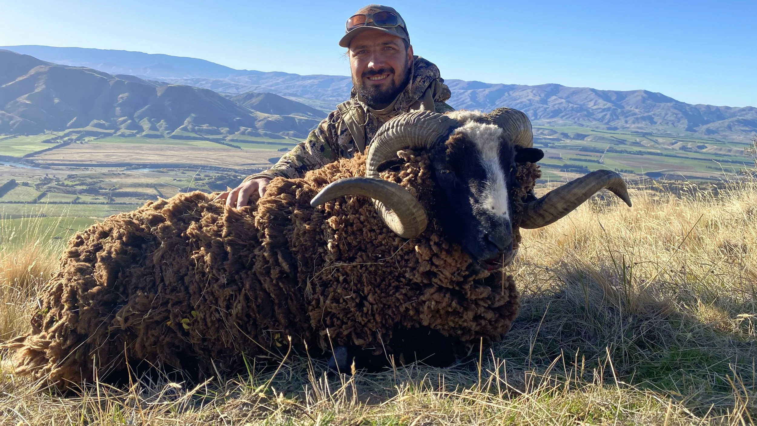 Arapawa rams are one of the only black-faced bighorn sheep, and are unique to New Zealand. A mature ram will have a full curl—sometimes two—and makes a handsome trophy.