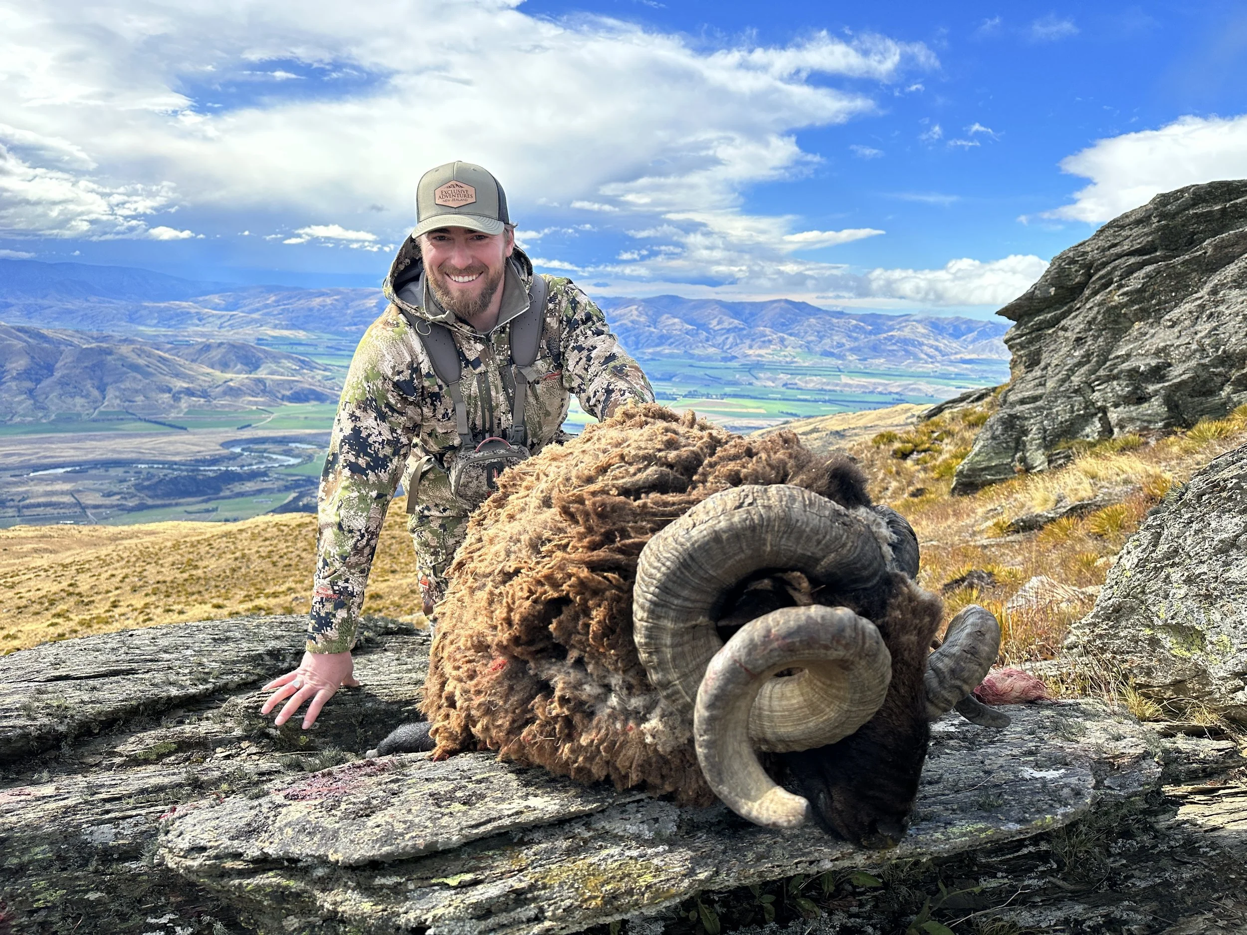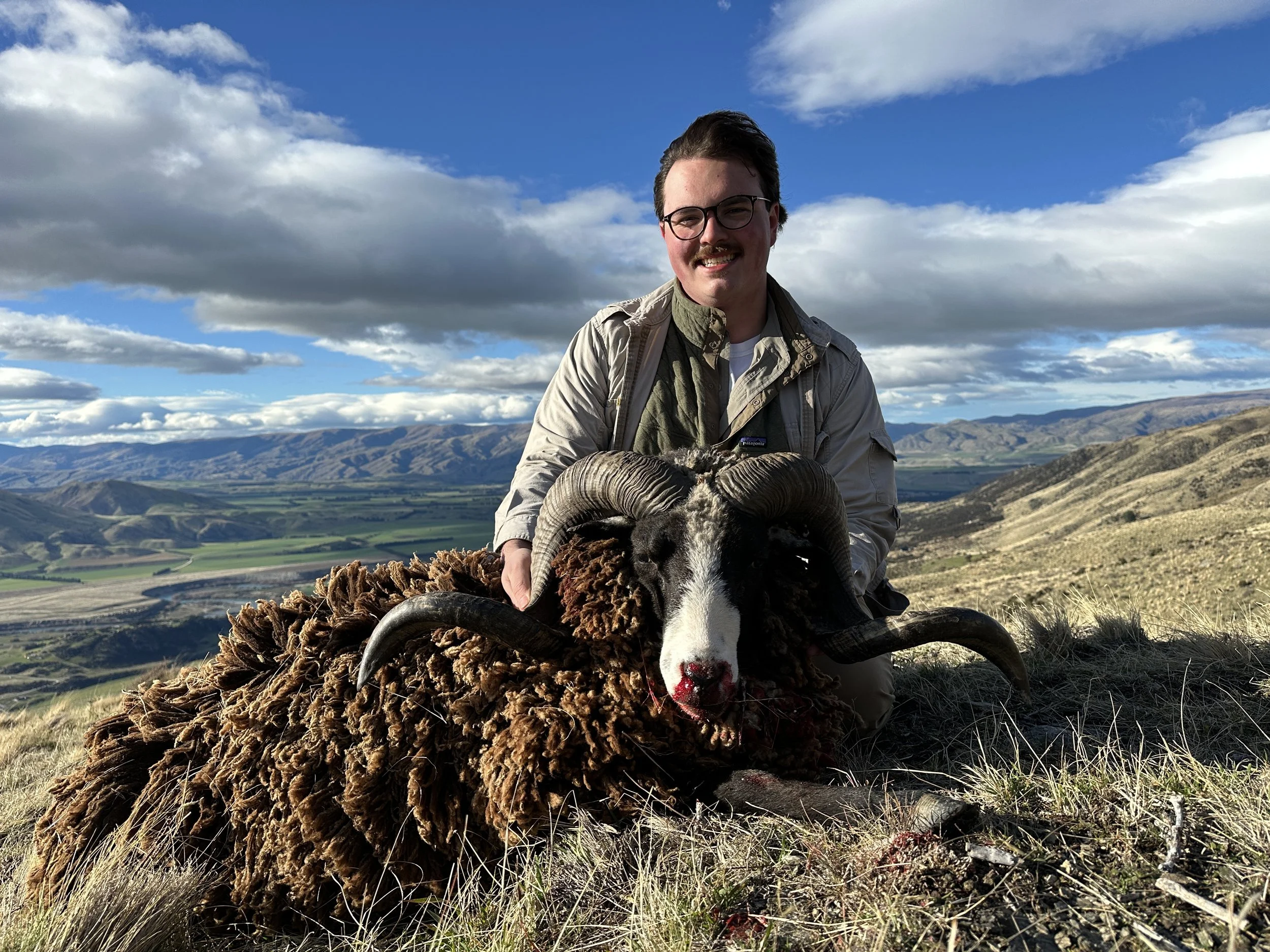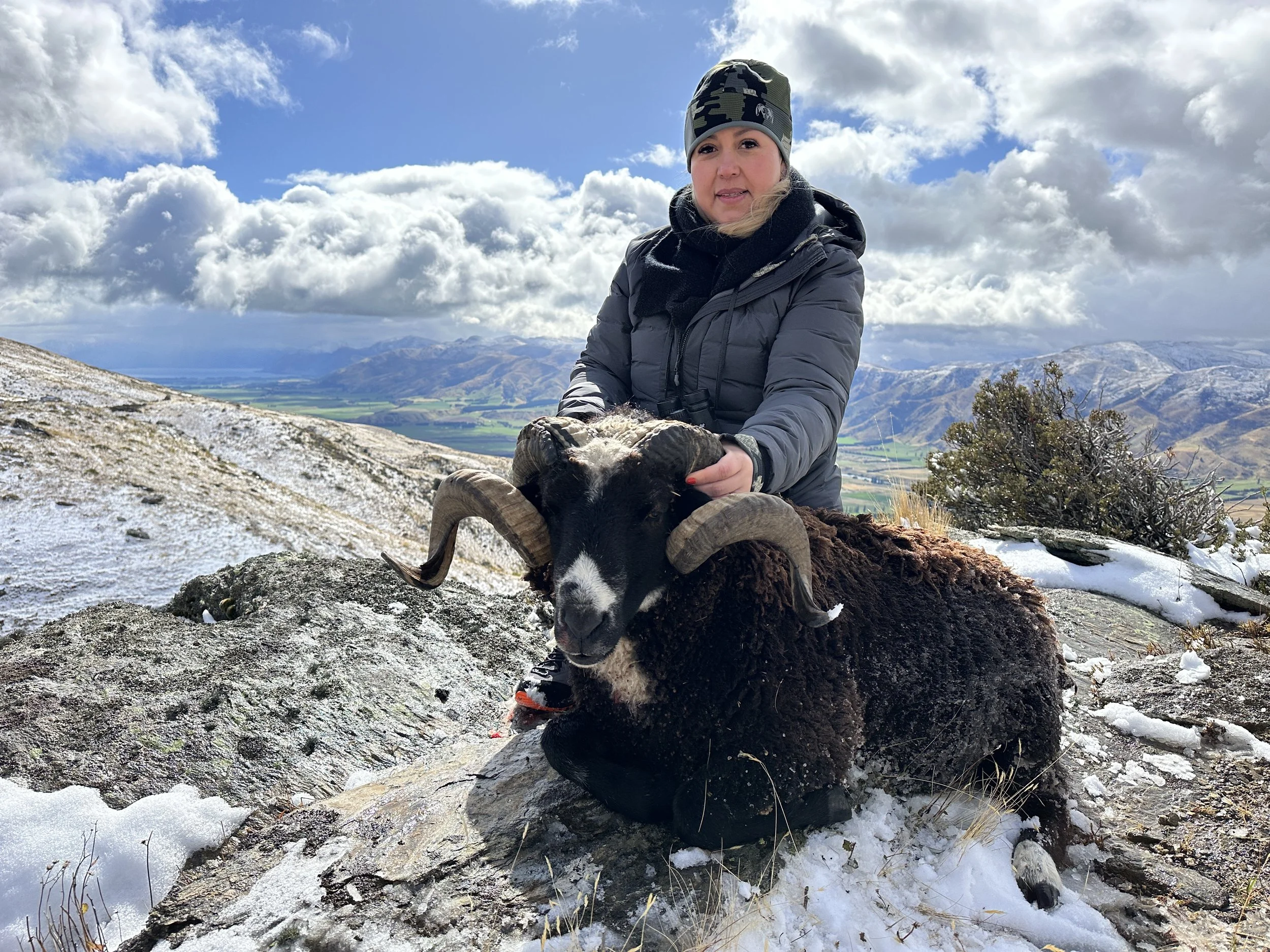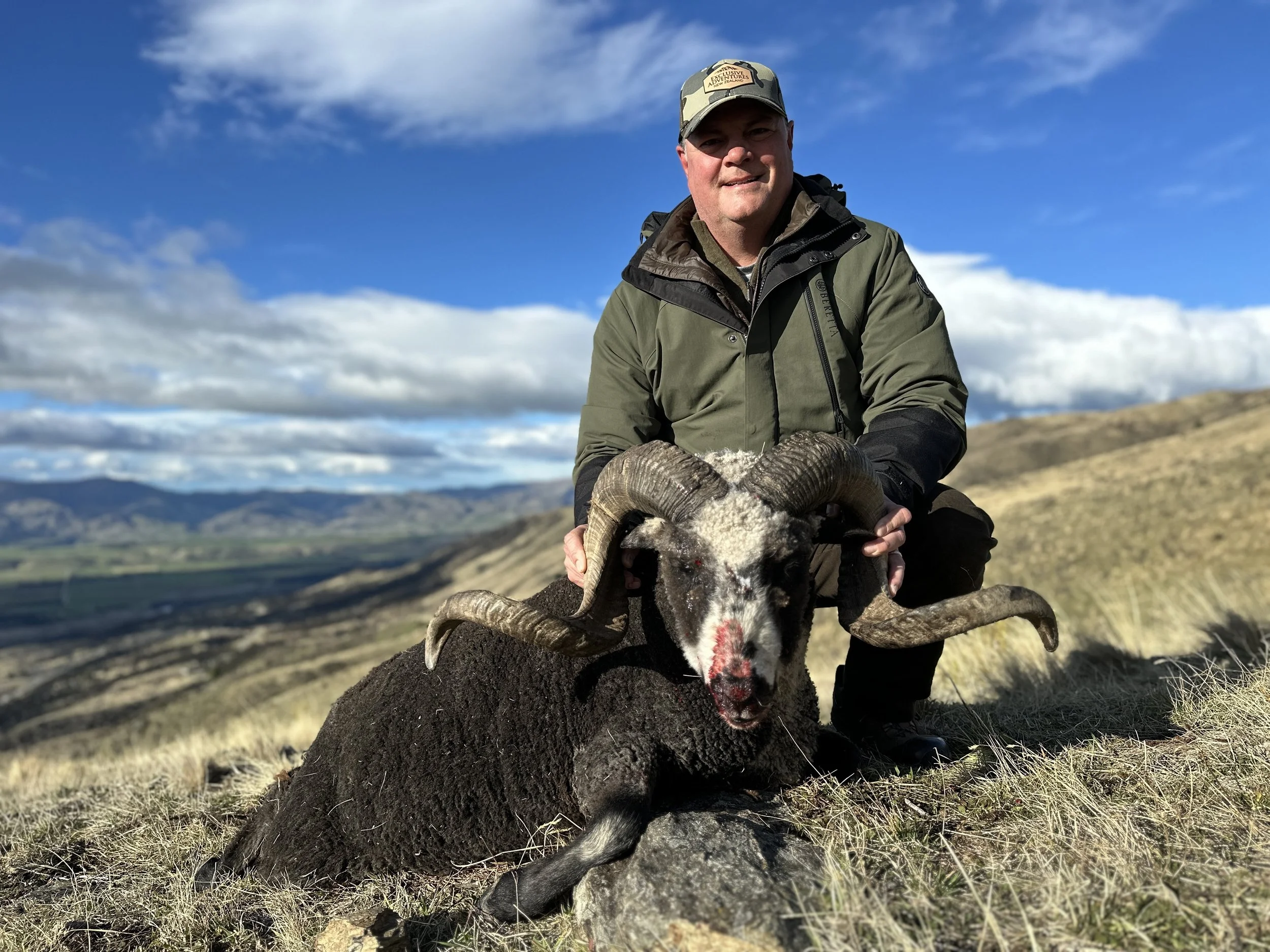 Arapawa rams are one of the only black-faced bighorn sheep, and are unique to New Zealand. A mature ram will have a full curl—sometimes two—and makes a handsome trophy.